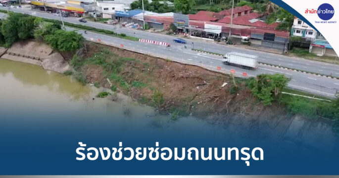 ชาวบ้านร้องหน่วยงานที่เกี่ยวข้องเข้าซ่อมแซมถนนทรุดกว่า 50 เมตร ใกล้สี่แยกวังยาว เมืองมหาสารคาม เพื่อความปลอดภัยของผู้ใช้รถใช้ถนน