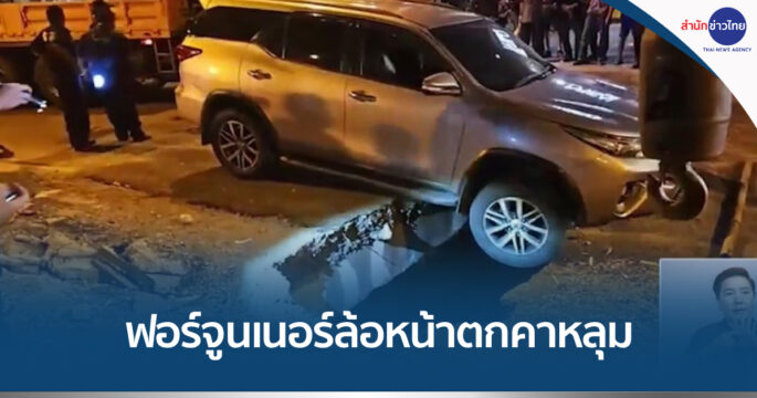 ะทึกกลางกรุง! ถนนทรุดตัวจากฝาบ่อพักน้ำแตกหัก ฟอร์จูนเนอร์ล้อหน้าตกคาหลุม บนถนนราชปรารถขาออก บริเวณแยกมักกะสัน-จตุรทิศ เจ้าหน้าที่เร่งซ่อมตลอดคืน ล่าสุดเปิดการจราจรได้แล้ว