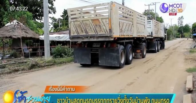 ชาวบ้านหมู่ 6 ต.น้ำทรง อ.พยุหะคีรี จ.นครสวรรค์ เดือดร้อนจากปัญหารถบรรทุกทรายวิ่งทั้งวัน ทำบ้านพังเสียหายหลายหลัง ถนนทรุด วอนหน่วยงานที่เกี่ยวข้องเข้ามาดูแล
