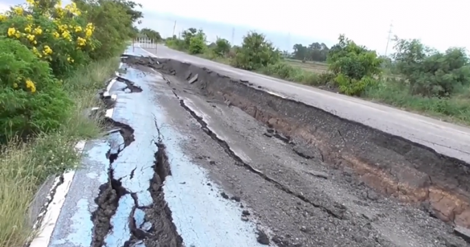 ภัยแล้งส่งผลถนนทรุดตัว ปภ.อ่างทองเตือนจุดเสี่ยงในพื้นที่หลายจุดต้องเฝ้าระวัง พร้อมประสานเกษตรกรหยุดสูบน้ำทำนาหลังพบเป็นสาเหตุหลัก