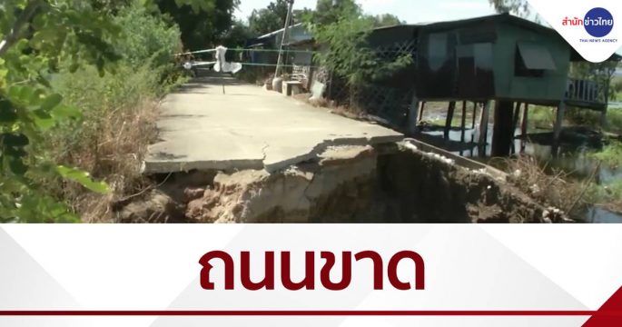 ชาวบ้านใน จ.ชัยนาท เดือดร้อนหนัก เพราะถนนคอนกรีตที่ใช้เดินข้ามระหว่างสระน้ำกับลำน้ำธรรมชาติทรุดตัว ต้องเลี่ยงไปใช้เส้นทางอื่นแทน