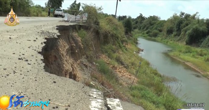 ชาวบ้าน อ.ชุมพวง จ.นครราชสีมา ส่งคำถามเข้ามาว่า ถนนทรุดตัวหายไป 1 เลน หวั่นเกิดอันตราย หลังน้ำในคลองแห้งขอด วอนหน่วยงานที่เกี่ยวข้องดูแล