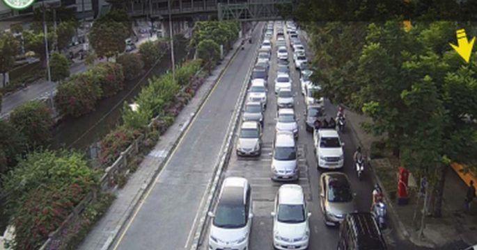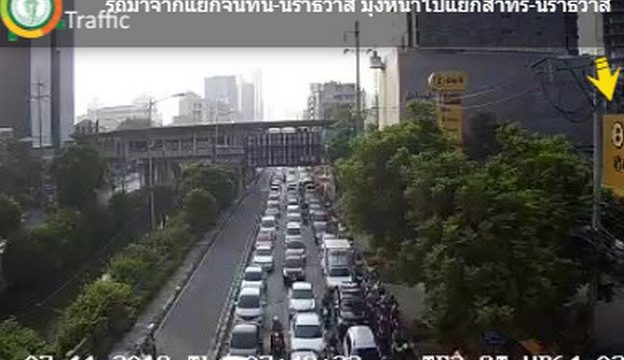 จราจรเช้าวันพฤหัสบดี ถนนนราธิวาสฯ ขาเข้า มุ่งหน้าสาทร รถมาก เคลื่อนตัวช้า ส่วนถนนเพชรบุรี ขาเข้า แยกอโศก – เพชรบุรี เคลื่อนตัวช้า