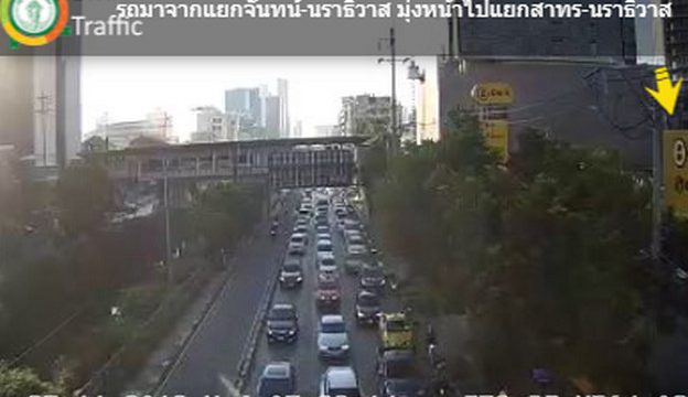 จราจรเช้าวันพุธ ถนนนราธิวาสฯ ขาเข้า จากแยกตัดถนนจันทน์ มุ่งหน้าถนนสาทร รถมาก ส่วนถนนพหลโยธิน มุ่งหน้าแยกสะพานควาย จราจรติดขัด