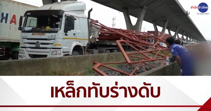 รถบรรทุกเฉี่ยวชนโครงเหล็กร่วงทับร่างผัวเมียดับ