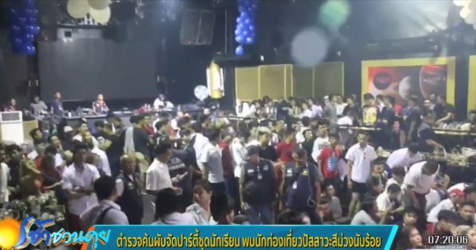 ตำรวจสนธิกำลัง ปปส.กทม.ค้นผับย่านถนนประดิษฐ์มนูธรรม จัดปาร์ตี้ชุดนักเรียน นักเที่ยวตื่นหนีอลหม่าน ทิ้งยาเสพติดเกลื่อนพื้น ทั้งยาอี ยาเค บุหรี่ไฟฟ้า ตรวจปัสสาวะพบเป็นสีม่วงรวมกว่า 100 คน
