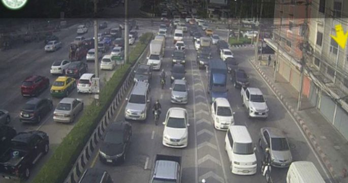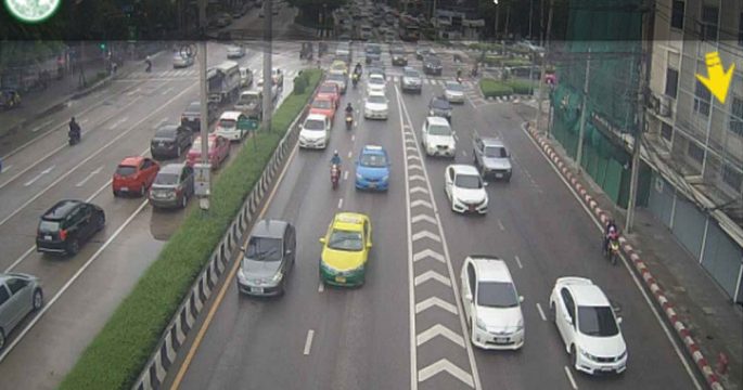 จราจรเช้าวันพฤหัสบดี ถนนพระราม 3 ขาเข้า แยกนางลิ้นจี่ เข้าแยก ณ ระนอง รถมาก ท้ายแถวสะสมแยกนางลิ้นจี่