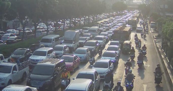 ถนนพระราม4 ขาเข้า ผ่านหน้าตลาดคลองเตย รถติด