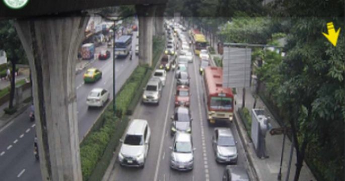 จราจรเช้าวันจันทร์ ถนนพหลโยธิน ขาเข้า มุ่งหน้าเข้าอนุสาวรีย์ชัยฯ เคลื่อนตัวช้า สลับหยุดนิ่ง