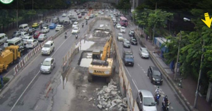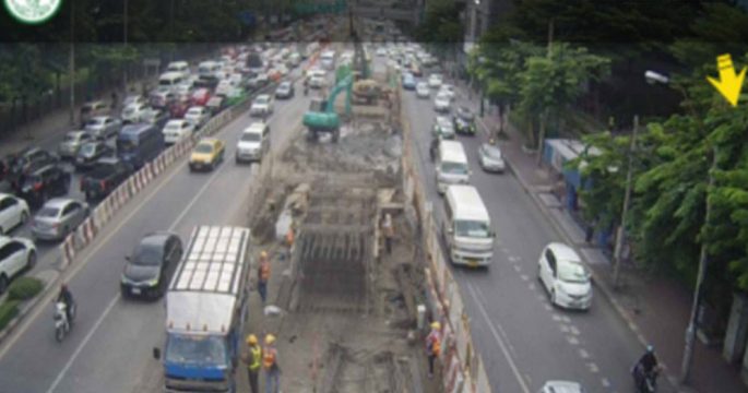 จราจรเช้าวันอังคาร ถนนพหลโยธิน ขาเข้า รถชะลอตัว แนวก่อสร้างรถไฟฟ้า