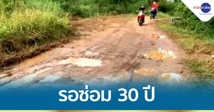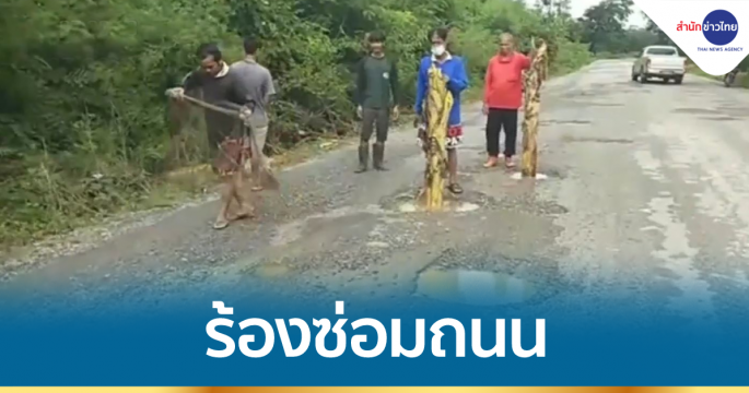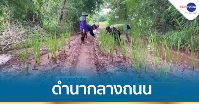 ถนนบ้านริมพองพัฒนา ต.นากอก อ.ศรีบุญเรือง จ.หนองบัวลำภู เป็นหลุมเป็นบ่อ ชาวบ้านลงไปอาบน้ำ-ดำนากลางถนน พระต้องช่วยบริจาคเงินซื้อหินคลุกไปถมให้