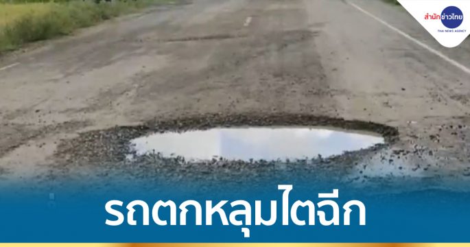 “ถนนเป็นหลุม” รถขับผ่านยางแตกนับสิบคัน จนท.รุดซ่อมแซม