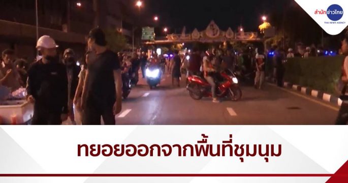 เวลา 22.10 น. บริเวณแยกนางเลิ้ง หลังประกาศยุติชุมนุม ผู้ชุมนุมได้ทยอยเดินเท้าออกจากพื้นที่ถนนพิษณุโลก มุ่งหน้าไปรถไฟฟ้า BTS หรือเดินเท้าไปขึ้นประจำทาง ซึ่งถนนนครสวรรค์เปิดการจราจรแล้ว ผู้ชุมนุมส่วนใหญ่ออกจากพื้นที่ด้านหน้าเชิงสะพานชมัยมรุเชฐ ใกล้ทำเนียบรัฐบาลเรียบร้อยแล้ว