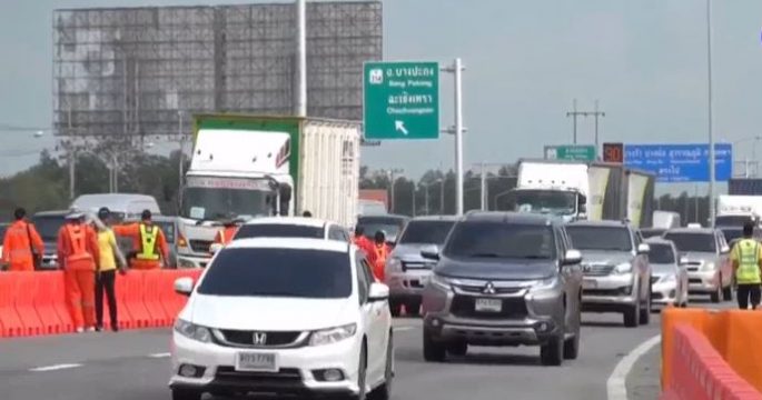 สภาพการจราจรทางหลวงหมายเลข 7 ช่วงกรุงเทพฯ-พัทยา หรือมอเตอร์เวย์ ช่วงวันหยุดยาว มีประชาชนใช้เส้นทางจำนวนมาก