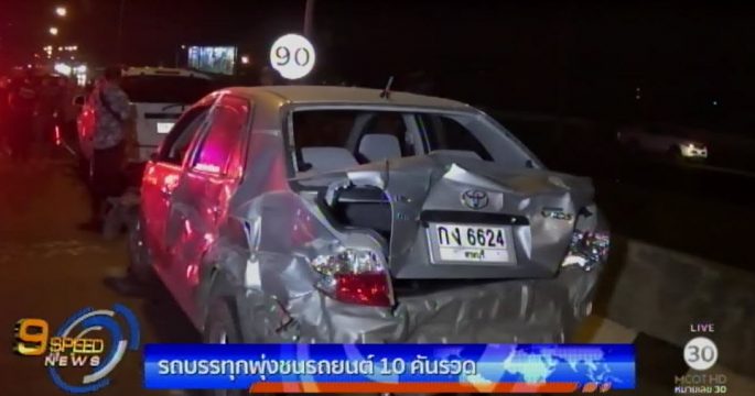 10 ล้อ บรรทุกปูน เบรกแตก ชนรถพัง 9 คัน บริเวณถนนมิตรภาพ จ.สระบุรี มีผู้บาดเจ็บเล็กน้อย 2 คน