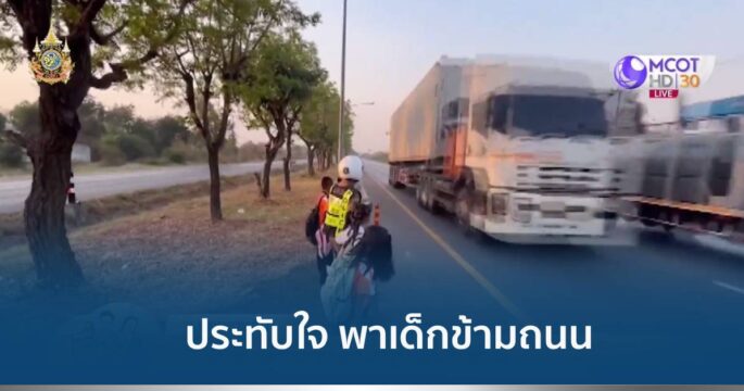 ชื่นชมตำรวจทางหลวงจูงมือเด็กนักเรียนข้ามถนนมิตรภาพไปโรงเรียนทุกวัน แถมทำความเคารพเด็ก เป็นภาพน่าประทับใจ