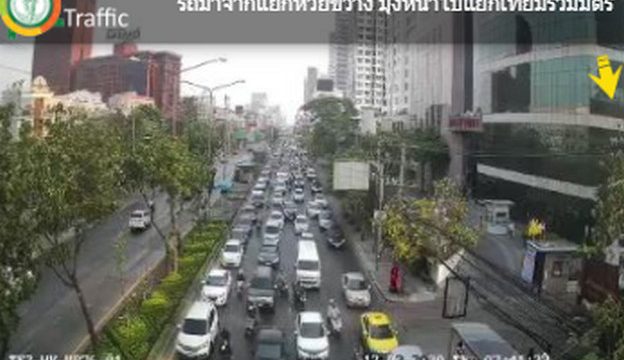 จราจรเช้าวันพฤหัสบดี ถนนรัชดาภิเษก ขาเข้า แยกสุทธิสาร มุ่งหน้าแยกห้วยขวาง – แยกเทียมร่วมมิตร เข้าแยกพระราม 9 – ถนนอโศกมนตรี จราจรติดขัด ท้ายแถวสะสมอุโมงค์ลอดแยกสุทธิสาร