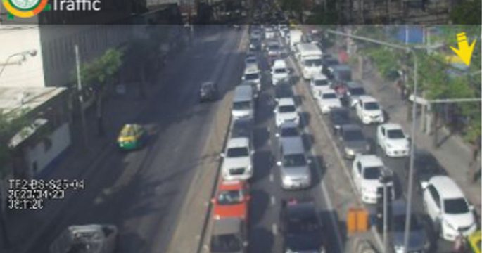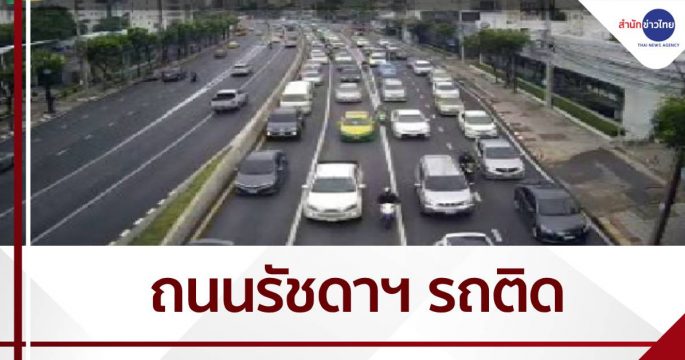 จราจรเช้าวันจันทร์ ถนนรัชดาภิเษก ขาเข้า มุ่งหน้าแยกประชานุกูล – ต่างระดับรัชวิภา รถติดขัดมาก ท้ายแถวสะสมทางลงสะพานพระราม 7