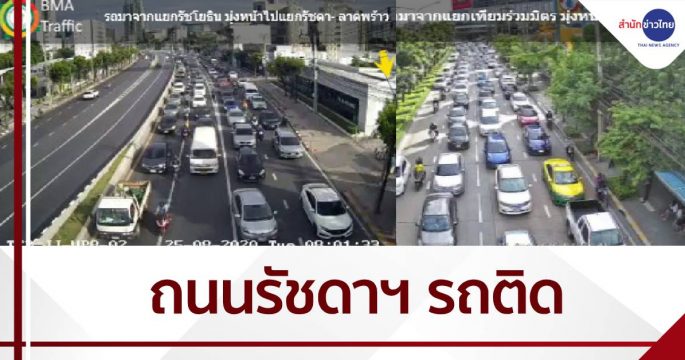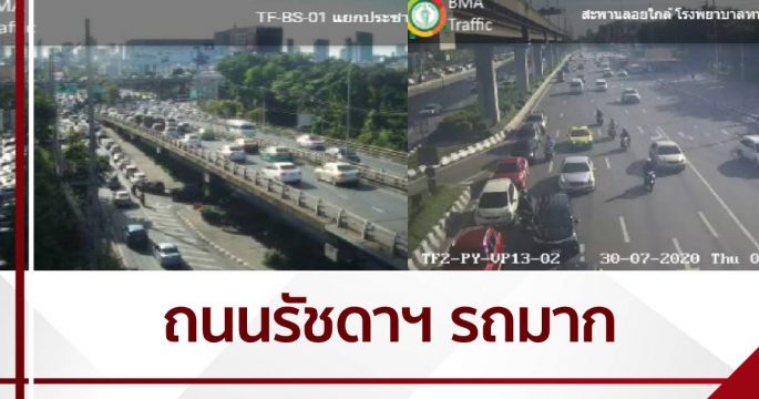 กทม. 30 ก.ค.-สวพ.FM91 รายงานจราจรเช้าวันพฤหัสบดี ถนนรัชดาภิเษก ขาเข้า ข้ามแยกประชานุกูล มุ่งหน้าต่างระดับรัชวิภา รถมาก ถนนวิภาวดี – รังสิต ขาเข้า จากแยกสุทธิสาร เข้าใต้ด่วนดินแดง รถน้อย การจราจรเคลื่อนตัวได้ต่อเนื่อง ถนนสมเด็จพระเจ้าตากสิน ขาเข้า จากแยกมไหสวรรย์ มุ่งหน้าแยกตากสิน เข้าวงเวียนใหญ่ รถมาก ถนนรามอินทรา ขาเข้า แยกมัยลาภ มุ่งหน้าแยกลาดปลาเค้า ข้ามวงเวียนบางเขน – ถนนแจ้งวัฒนะ – แยกหลักสี่ ติดขัด.-สำนักข่าวไทย