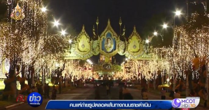 ค่ำคืนนี้ ตลอดถนนราชดำเนิน เส้นทางขบวนเสด็จพระราชดำเนิน ในงานพระราชพิธีบรมราชาภิเษก มีการประดับไฟและดอกไม้งดงามสมพระเกียรติ