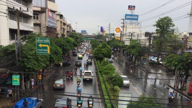 จราจรเช้าวันพฤหัสบดี ถนนลาดพร้าว ขาเข้ามุ่งหน้าใต้ทางด่วน รถมาก เช่นเดียวกับถนนรามอินทรา มุ่งหน้าไปวงเวียนบางเขน