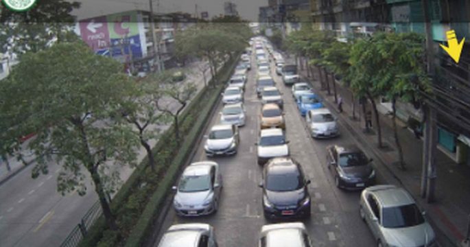 จราจรถนนลาดพร้าว ขาเข้า มุ่งหน้าไปปากทางลาดพร้าว เริ่มเคลื่อนตัวช้า ท้ายสะสมอยู่ที่ใกล้แยกรัชดา-ลาดพร้าว