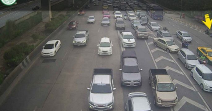 สวพ.FM 91 รายงานจราจรเช้าวันจันทร์ ถนนวิภาวดี มุ่งหน้าแยกใต้ด่วนดินแดง รถหนาแน่นเคลื่อนตัวช้า ถนนพหลโยธิน มุ่งหน้าอนุสาวรีย์ชัยฯ รถแน่นเต็มพื้นที่