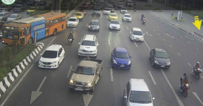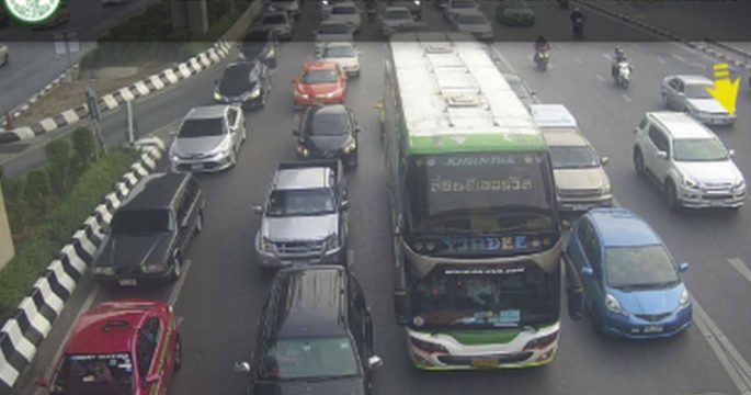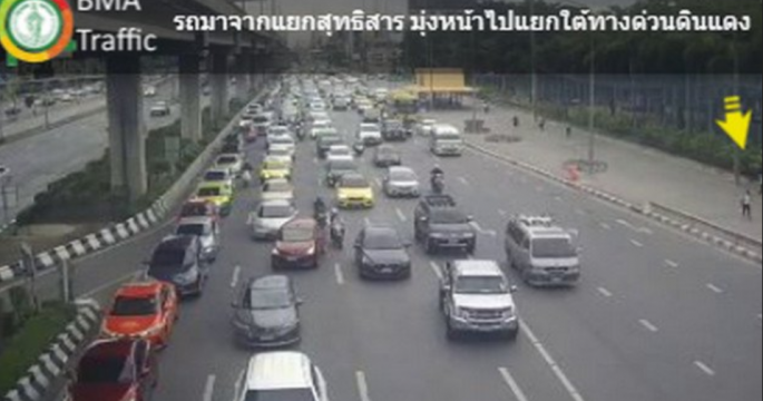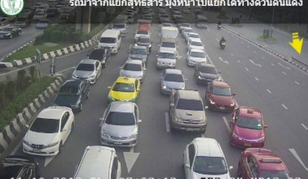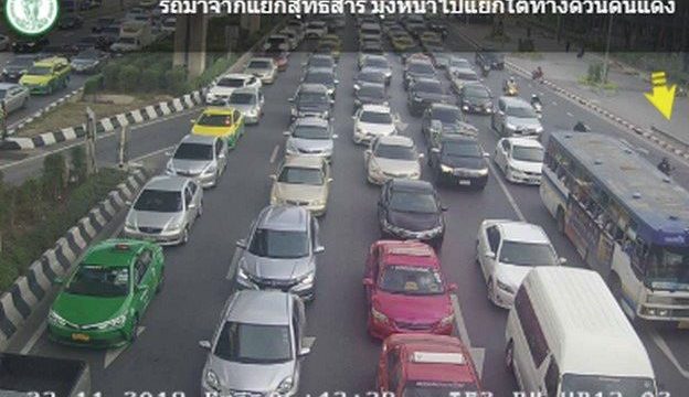 จราจรเช้าวันจันทร์ ถนนวิภาวดี-รังสิต ขาเข้า มุ่งหน้าใต้ทางด่วนดินแดง รถเคลื่อนตัวช้า สลับหยุด ท้ายแถวสะสมหน้าการบินไทย สำนักงานใหญ่ กลับกันฝั่งขาออก เคลื่อนตัวได้ดีกว่า