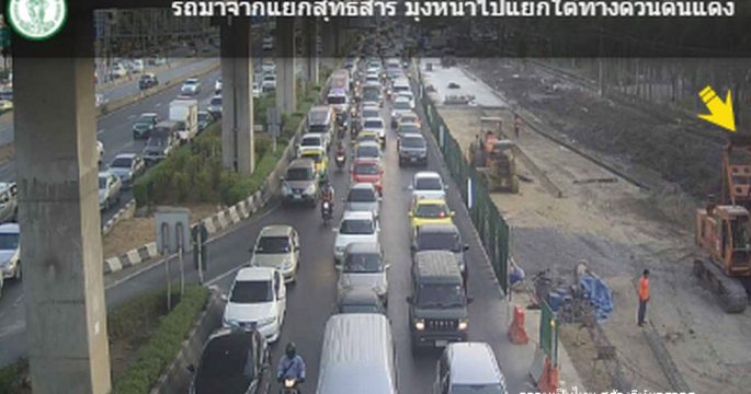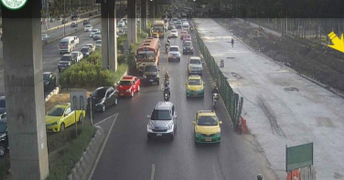 สวพ.FM91 รายงานจราจรเช้าวันจันทร์ ถนนวิภาวดี-รังสิต ขาเข้า มุ่งหน้าใต้ด่วนดินแดง ช่องทางด่วนและคู่ขนาน รถมาก