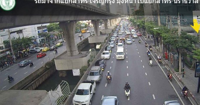 บก.จร.รายงานจราจรเช้าวันพฤหัสบดี ถนนนราธิวาสฯ มุ่งหน้าถนนสาทร รถมากเคลื่อนตัวช้า ถนนเพชรเกษม มุ่งหน้าแยกท่าพระ รถหนาแน่น