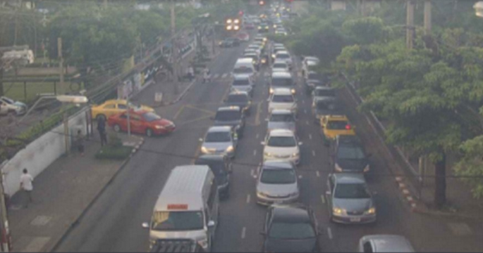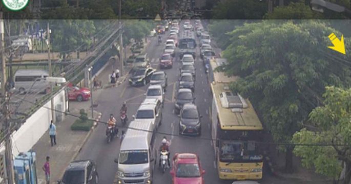 ถนนสามเสน จากแยกศรีย่าน มุ่งหน้าแยกวชิระ-ซังฮี้ รถมาก ด้านถนนศรีอยุธยา จากแยกพญาไท มุ่งหน้าแยกศรีอยุธยา รถหนาแน่น เคลื่อนตัวได้ช้า