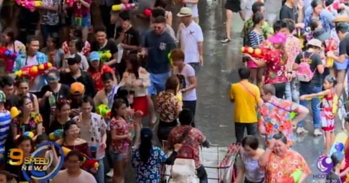 นักท่องเที่ยวทั้งชาวไทยและชาวต่างชาติทยอยเล่นสาดน้ำสงกรานต์บนถนนสีลมและถนนข้าวสารอย่างสนุกสนาน ท่ามกลางกำลังตำรวจและทหารคุมเข้มรักษาความปลอดภัย