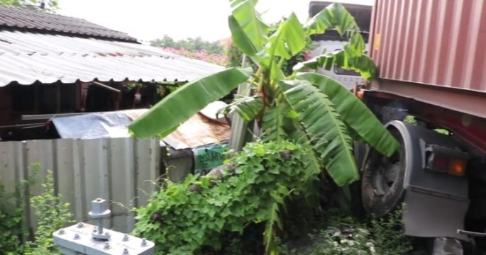 เกิดอุบัติเหตุ ถ.เทพรัตน-บางปะกง รถพ่วง 18 ล้อ พุ่งข้ามช่องคู่ขนานเข้าชนบ้านเสียหาย คนขับสารภาพหลับใน ส่วนเจ้าของบ้านเจ็บเล็กน้อย