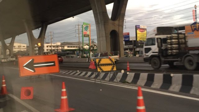 จราจรเช้าวันศุกร์ ถนนเทพรัตน (บางนาตราด) ขาเข้าที่ กม.16 ปิดช่องทางเบี่ยงจากคู่ขนานไปช่องทางด่วน ทำจราจรติดขัด