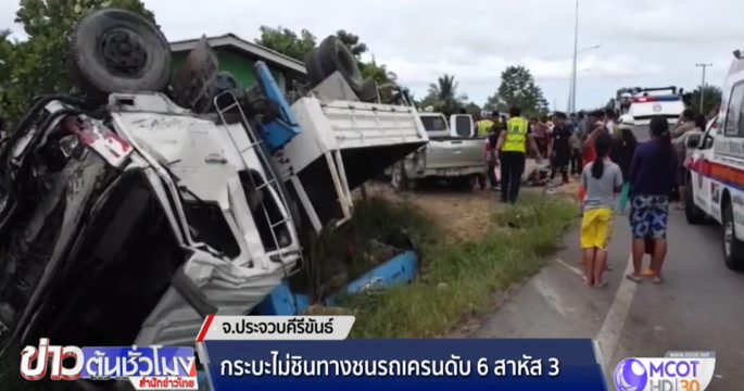รถเครน 6 ล้อ ชนประสานงารถกระบะกลางสี่แยก ทำให้คนในรถกระบะเสียชีวิต 6 ราย รอดตาย 1 เป็นหญิงวัย 16 ปี แต่บาดเจ็บสาหัส และต้องสูญเสียลูกน้อยในครรภ์