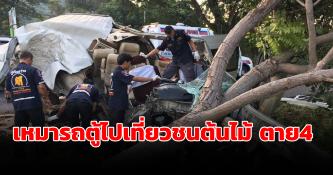 อุบัติเหตุเศร้าเช้านี้ ถนนสายเพชรเกษม-ประจวบฯ รถตู้เหมาพาไปเที่ยวภาคใต้ชนต้นไม้เต็มแรงเสียชีวิต 4 เจ็บอีก 6