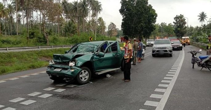 รถกระบะแหกโค้งชนรถจักรยานยนต์บนถนนเพชรเกษม อ.บางสะพาน จ.ประจวบคีรีขันธ์ เสียชีวิต 4 ราย