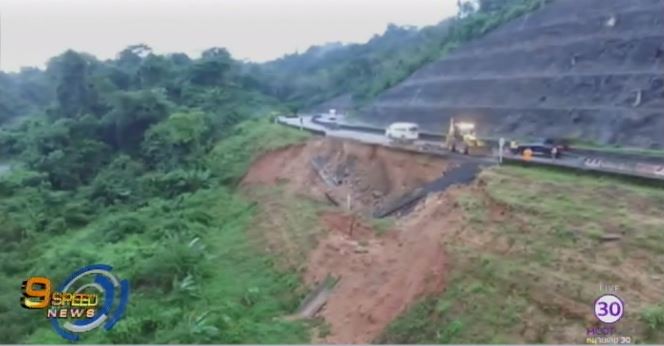 ดินสไลด์ลงไปในเหวลึกกว่า 15 เมตร เป็นทางยาวกว่า 100 เมตร บนถนนเพชรเกษม รอยต่อเขตจังหวัดพัทลุง และพังงา เจ้าหน้าที่เร่งซ่อม