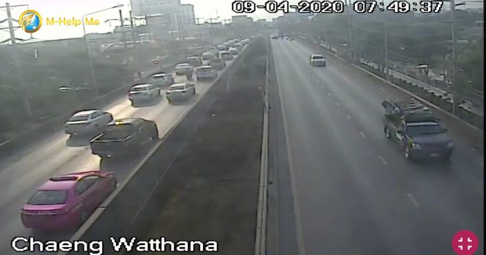 จราจรเช้าวันพฤหัสบดี ถนนแจ้งวัฒนะ ขาเข้า ผ่านจุดคัดกรอง COVID-19 หน้าบิ๊กซี แจ้งวัฒนะ ยังเคลื่อนตัวได้เรื่อยๆ ไม่ติดขัด