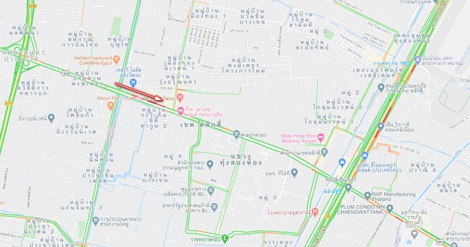 จราจรเช้าวันพุธ ถนนแจ้งวัฒนะ ขาเข้า ไปใต้ทางด่วนแจ้งวัฒนะ ต่อเนื่องแยกหลักสี่ รถเคลื่อนตัวช้า