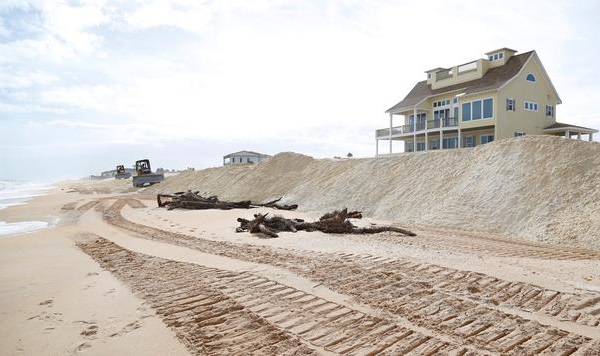 รถบรรทุกหลายสิบคันลำเลียงทรายเป็นปริมาณหลายแสนตันถมลงบริเวณชายหาดของเมืองไมอามี ซึ่งเป็นส่วนหนึ่งของรัฐบาลสหรัฐในการปกป้องชายหาดที่เป็นสถานที่ท่องเที่ยว
