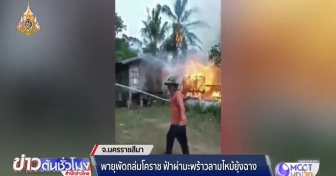 พายุถล่มโคราช ฟ้าผ่าต้นมะพร้าวลามไหม้ยุ้งฉาง