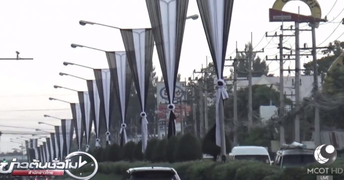 หลายจังหวัดเร่งประดับตกแต่งดาวเรืองเพื่อถวายความจงรักภักดี ที่สมุทรสงคราม ผู้ประกอบการภาคเอกชนและประชาชนร่วมกันแห่ดอกดาวเรืองยักษ์ 9 ดอก ไปรอบเมือง เพื่อร่วมถวายความอาลัย