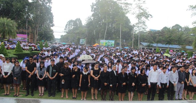 พสกนิกรทุกหมู่เหล่าบุรีรัมย์นับหมื่นคนร้องเพลงสรรเสริมพระบารมีดังกึกก้องก่อนรวมใจแปรอักษรรูป “ปราสาทพนมรุ้ง” น้อมรำลึกพระมหากรุณาธิคุณ