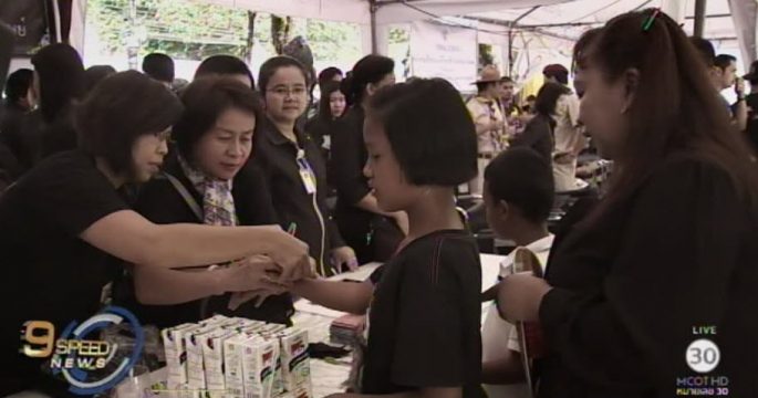 เจ้าหน้าที่จัดบริการพิเศษดูแลผู้สูงอายุและเด็ก ที่จะเข้ากราบถวายสักการะเบื้องหน้าพระโกศ พระบรมศพพระบาทสมเด็จพระปรมินทรมหาภูมิพลอดุลยเดช