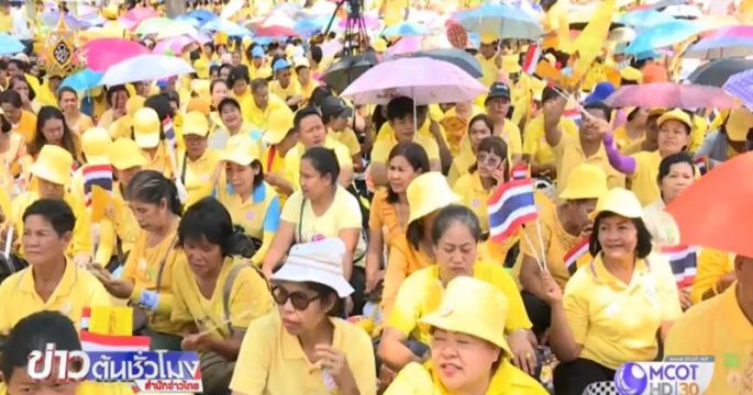 ประชาชนเฝ้าทูลละอองธุลีพระบาทถวายพระพรชัยมงคล พระบาทสมเด็จพระเจ้าอยู่หัว เสด็จออก ณ สีหบัญชร ต่างรู้สึกปลาบปลื้มและสำนึกในพระมหากรุณาธิคุณ