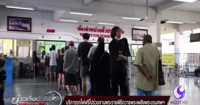 ประชาชนในพื้นที่ อ.หาดใหญ่ จ.สงขลา และจังหวัดใกล้เคียง รอรับตั๋วโดยสารรถไฟฟรีเป็นจำนวนมาก เพื่อเดินทางไปร่วมพระราชพิธีถวายพระเพลิงพระบรมศพ