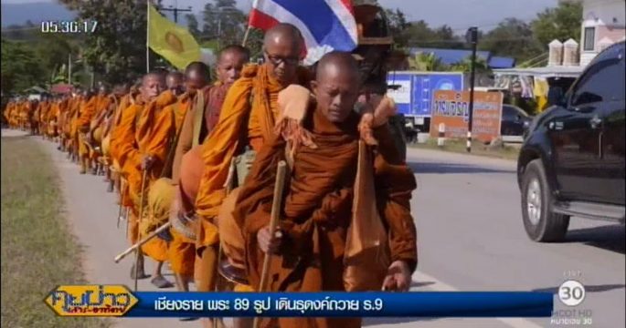 คณะสงฆ์เชียงราย 89 รูป เดินธุดงค์ธรรมจาริกมุ่งหน้าพระบรมมหาราชวัง ถวายเป็นพระราชกุศลแด่พระบาทสมเด็จพระปรมินทรมหาภูมิพลอดุลยเดช ล่าสุดมาถึง อ.วังเหนือ จ.ลำปาง แล้ว
