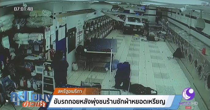 ชายสูงอายุขับรถถอยรถพุ่งชนร้านซักผ้าแห่งหนึ่งในสหรัฐจนพังเสียหาย ทำให้ลูกค้าที่ใช้บริการอยู่ภายในร้านได้รับบาดเจ็บหลายคน