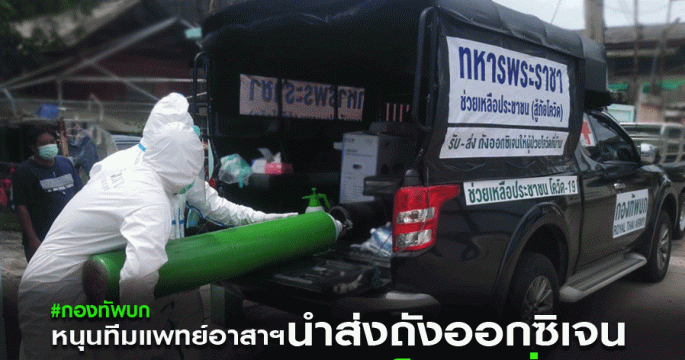 กองทัพบกสนับสนุนทีมแพทย์อาสาฯ นำส่งถังออกซิเจน ช่วยต่อลมหายใจผู้ป่วยโควิดที่รักษาตัวที่บ้านในพื้นที่กทม.-ปริมณฑล ย้ำได้รับการอบรมเพื่อเพื่อให้คำแนะนำกับผู้ป่วยหรือครอบครัวเบื้องต้นได้